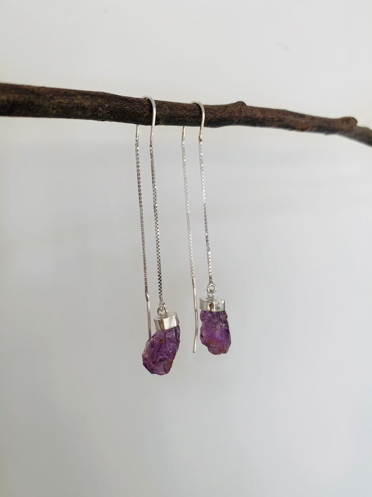 Brinco Gancho Ametista Bruta