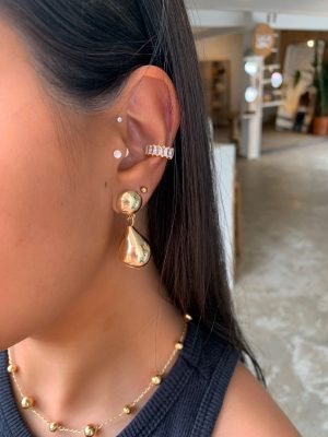 Imagem com mulheres usando brincos de prata Mundo Bangalô